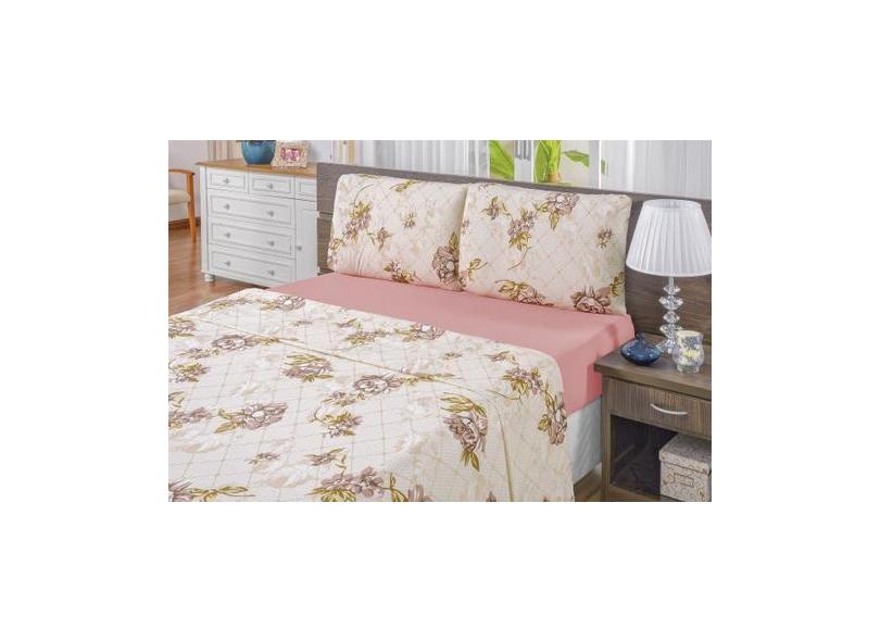 Jogo De Cama Casal Queen 4 Peças Quality Malha Algodao Rose - Sarah En