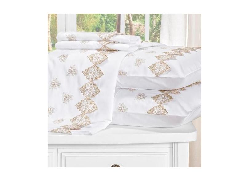 Jogo De Cama Casal Queen Sensualle 4 Peças Bordado 100% Algodão 400