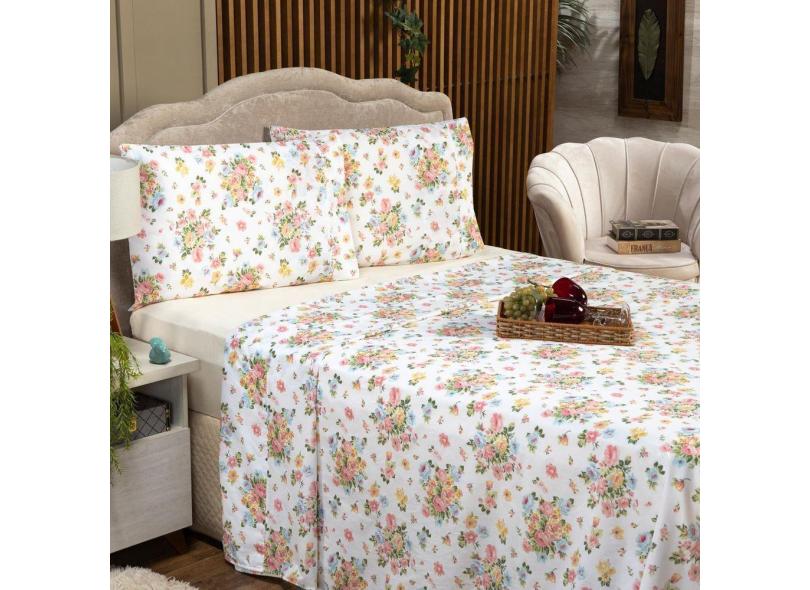 Jogo De Cama Estampado Floral Palha King 04 Peças