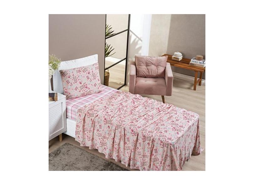 Jogo De Cama Infantil Malha 100% Algodão Estampado 03 Peças - Safira E