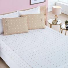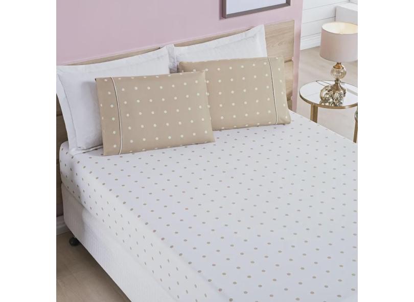 Jogo de Cama Lençol 200 Fios Petit Poá Queen 03 Peças - Caqui