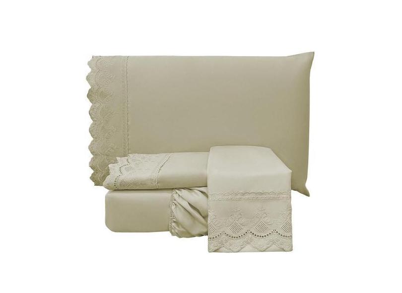 Jogo De Cama Lençol Casal Apolo Micropercal 300 Fios - Bege - Casa Sho