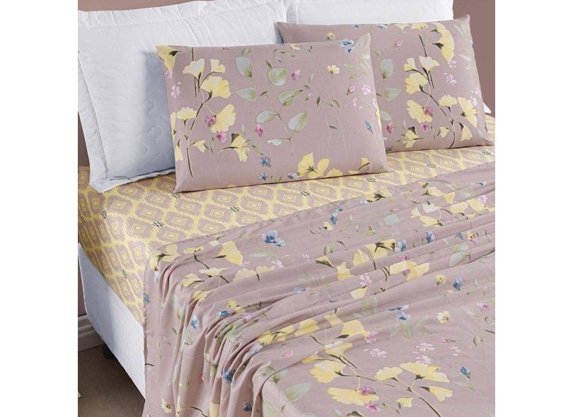 Jogo De Cama Lençol Casal King 04 Peças Microfibra Estampada Ayla - Lavanda Floral