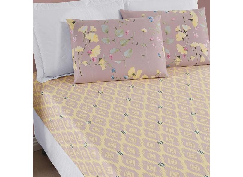Jogo de Cama Lençol Dallas Solteiro Microfibra 2 Peças - Rosê Lavanda Floral