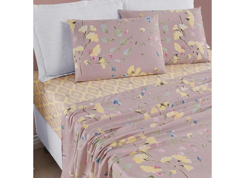 Jogo de Cama Lençol Dallas Solteiro Microfibra 3 Peças - Rosê Lavanda Floral
