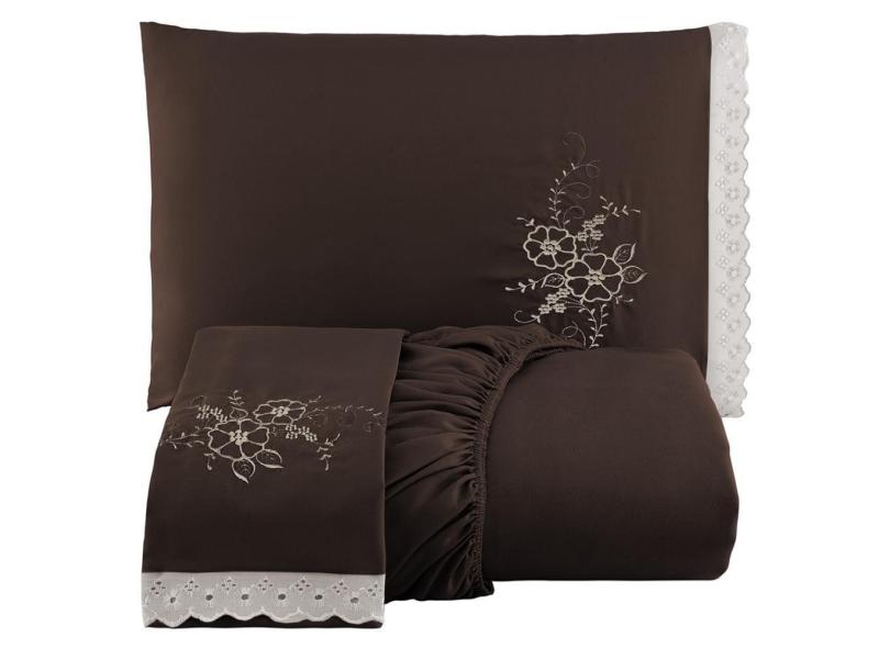 Jogo De Cama Lençol Queen Bordado Advance 3 Peças - Tabaco
