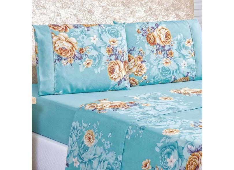 Jogo De Cama Lençol Real Solteiro Micro Percal 200 Fios 03 Peças Azul Jasmine