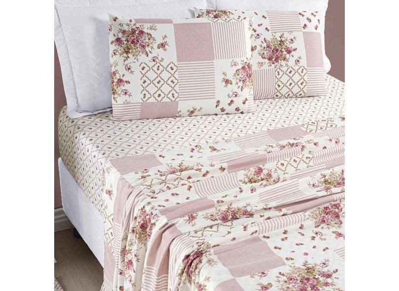 Jogo de Cama Lençol Solteiro 03 Peças Microfibra Estampada Ayla - Rosa Floral Mature
