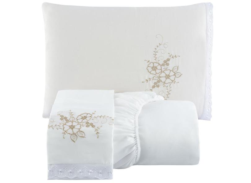 Jogo De Cama Lençol Solteiro Bordado Advance 2 Pçs - Branco