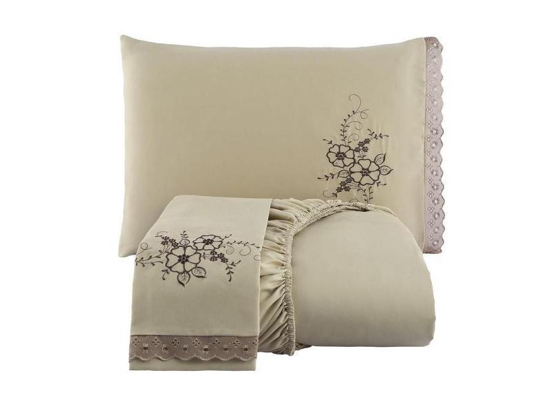 Jogo De Cama Lençol Solteiro Bordado Advance 2 Peças - Avelã - Casa Sh