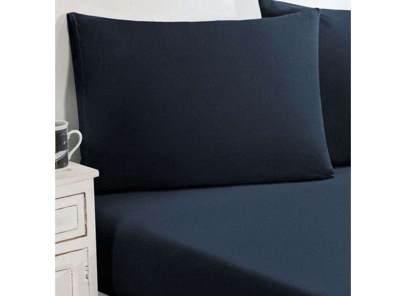 Jogo De Cama Malha Lençol 100% Algodão Gran Moratta 3 Peças King Azul Petróleo
