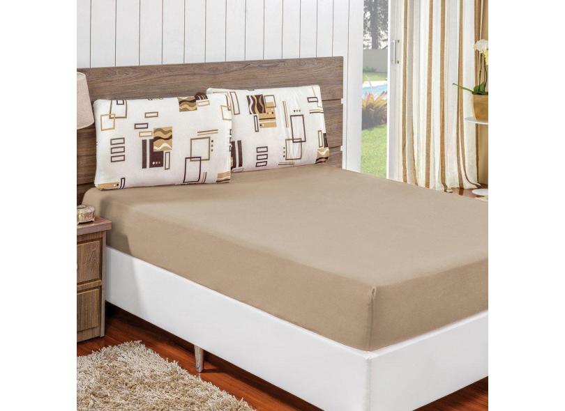 Jogo De Cama Malha Queen Quality 03 Peças Avelã