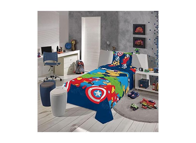 Jogo de Cama Microfibra Solteiro Estampado Avengers 1,40 m x 2,20 m Com 2 peças