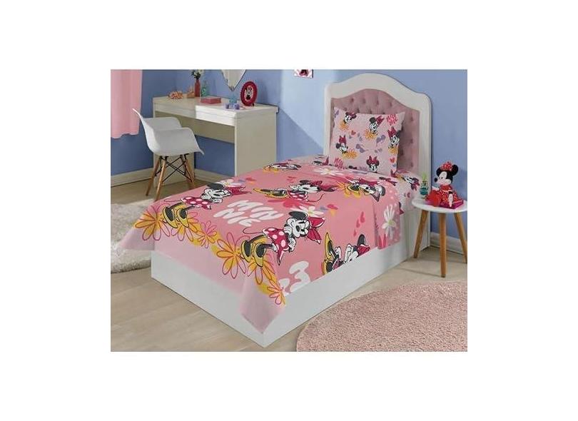Jogo de Cama Microfibra Solteiro Estampado Minnie 1,40 m x 2,20 m Com 3 peças
