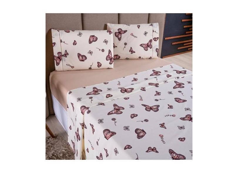 Jogo de Cama Refúgio Casal Percal 100% Algodão Luxo 4 Peças Borboletas