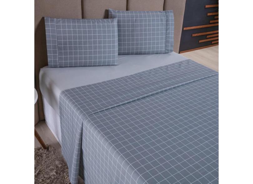 Jogo de Cama Refúgio Casal Percal 100% Algodão Luxo 4 Peças Grid Cinza