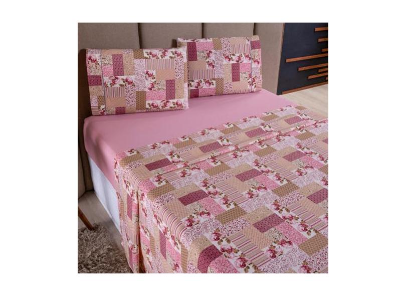 Jogo De Cama Refúgio King Percal 100% Algodão Luxo 4 Peças Floral Rosê