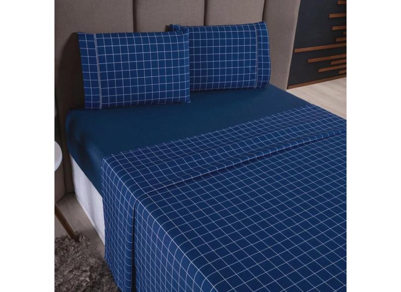 Jogo de Cama Refúgio King Percal 100% Algodão Luxo 4 Peças Grid Azul