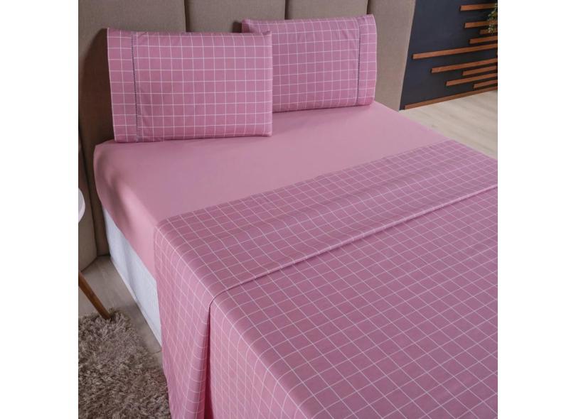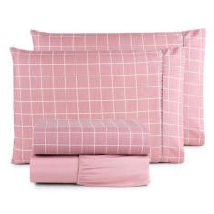 Jogo de Cama Refúgio King Percal 100% Algodão Luxo 4 Peças Grid Rosa