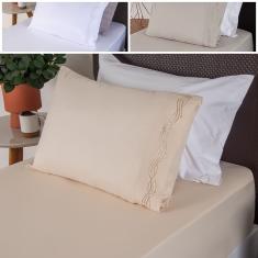 Jogo de Cama Solteiro 2 Peças Micro Percal 300 Fios Bordado Branco - BF Colchões