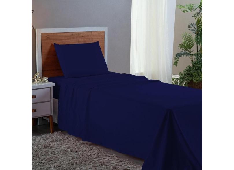 Jogo de Cama Solteiro 3 pç 400 Fios Azul Marinho