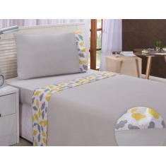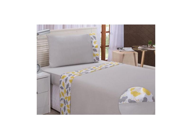 Jogo De Cama Solteiro Algodão 180 Fios Com Elástico Nuvem Cinza 3 Pç