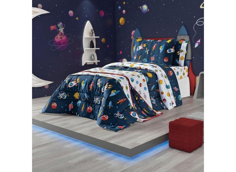 Jogo De Cama Solteiro Astro Azul Marinho 03 Peças 180 Fios