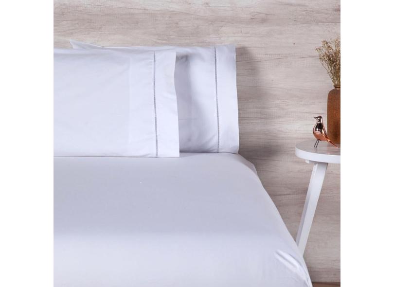 Jogo de Cama Solteiro Lençol com Elástico 200 Fios Ponto Palito Branco 02 Peças