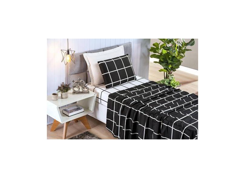 Jogo De Cama Xadrez 200 Fios Micropercal 3 Peças Solteiro - Safira Enx
