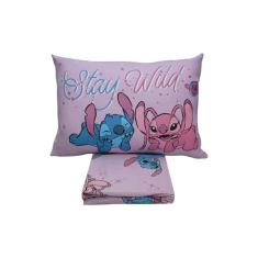 Jogo de Lençol 2 Peças Portallar Disney Stitch E Angel Love Solteiro