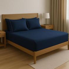 Jogo De Lençol 400 Fios Percal Poliéster Liso Toque Macio Com Elástico