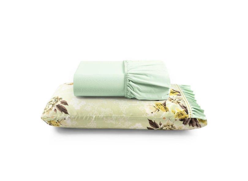 Jogo De Lençol Afrodite Solteiro 2 Peças Algodão 180 Fios Estampado Floral - Verde