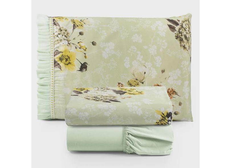 Jogo de Lençol Afrodite Solteiro 3 Pçs Algodão 180 Fios Estampado Floral - Verde