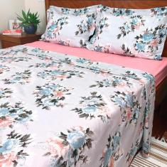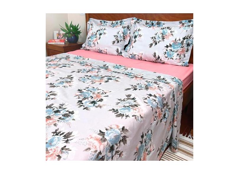 Jogo de Lençol Algodão Queen Size 4 Peças 180 Fios Compose Fronha Deta