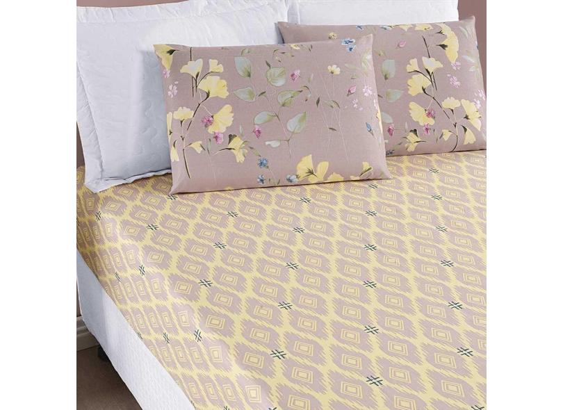 Jogo De Lençol Ayla Casal King 3 Peças Microfibra Estampada Floral - Lavanda