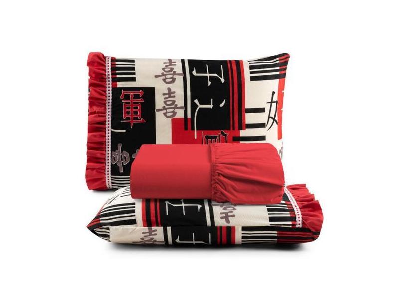 Jogo De Lençol Babadinho Queen 180 Fios 3 Peças- Vermelho - Santos E L
