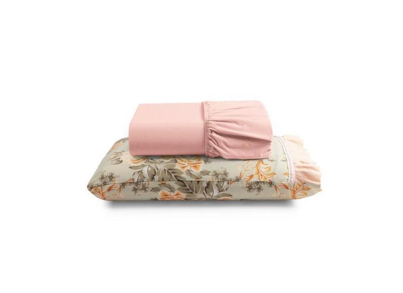 Jogo De Lençol Babadinho Solteiro 180 Fios 2 Peças - Salmão - Santos E