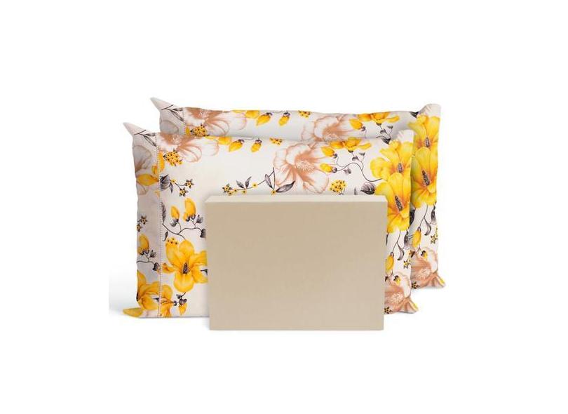 Jogo De Lençol Cama Padrão 3 Peças Percal Florença Palha - Casa Home
