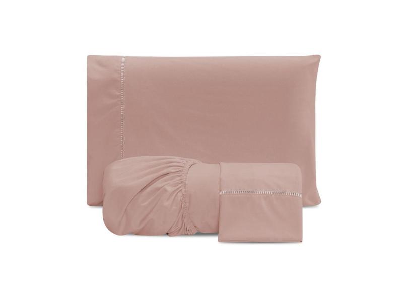 Jogo De Lençol Casal 3 Peças 300 Fios Rosa