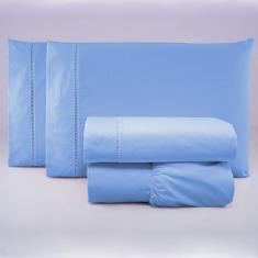 O menor preço encontrado no Brasil para Jogo de Lençol Casal Algodão Percal 200 Fios 4 Peças - Azul atualmente é R$ 270,30.