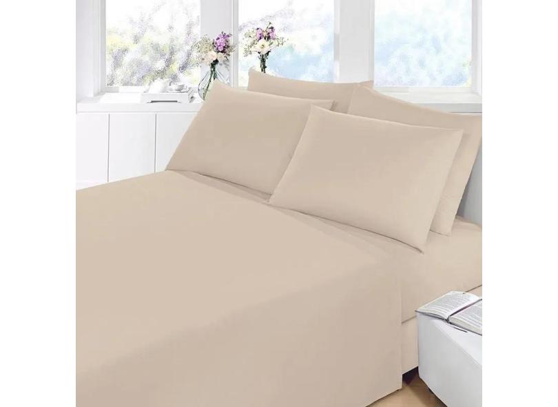 Jogo De Lençol Casal Linha Charme Para Cama Box 4 Peças Bege