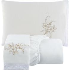 Jogo de Lençol Casal Padrão 3 peças Bordado Microfibra -