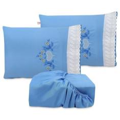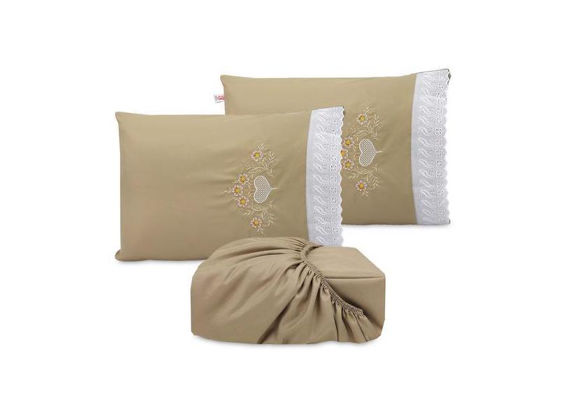 Jogo De Lençol Casal Queen Elástico Bordado Com Lese Microfibra 3 Peça