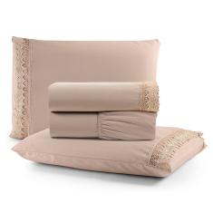 Jogo De Lençol Casal Suavitec Com Grippir 4 Peças - Avelã