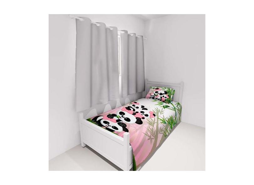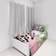 Jogo De Lençol Cobre Leito Fronha Solteiro Panda Rosa - Decorando E Gr