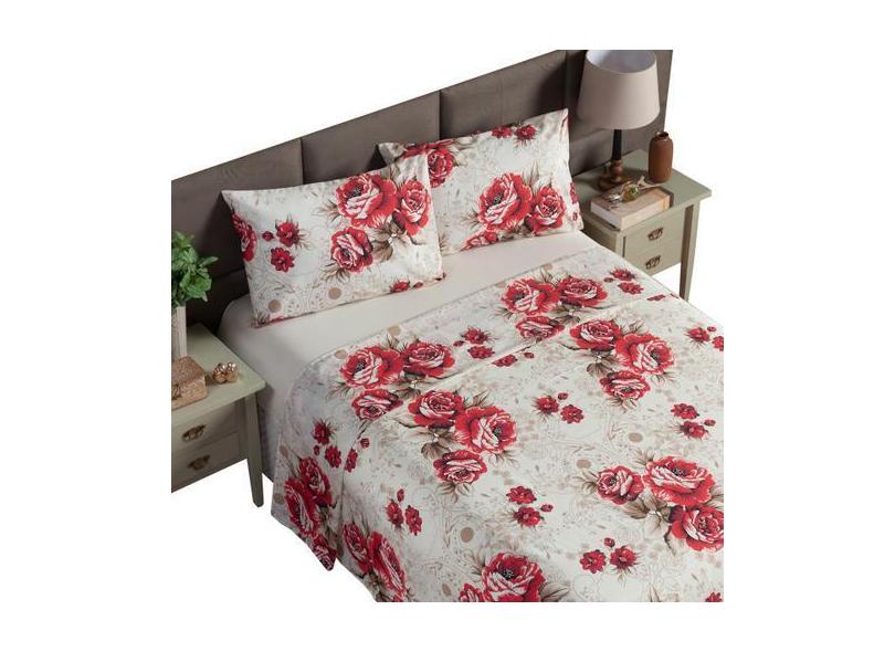Jogo De Lençol Elástico Cama King Size 4 Peças 180 Fios Estampado Flor