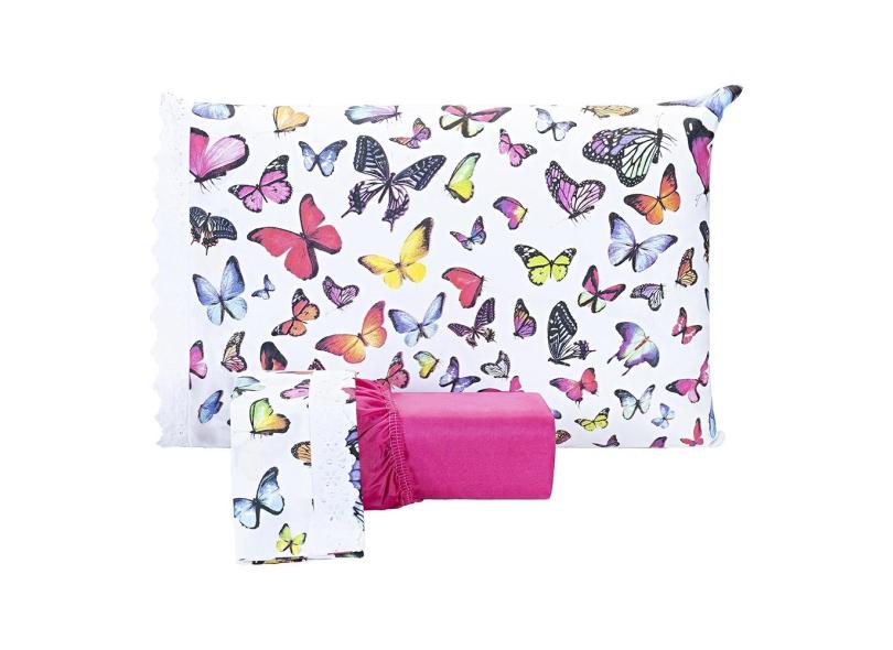 Jogo De Lençol Estampado Solteiro 02 Peças Borboletas Pink - Algodão