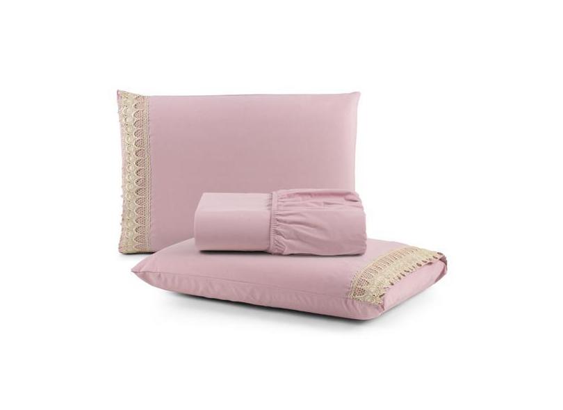 Jogo De Lençol Gippir King Percal 200 Fios 3 Peças - Rosê - Santos E L