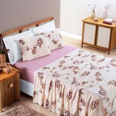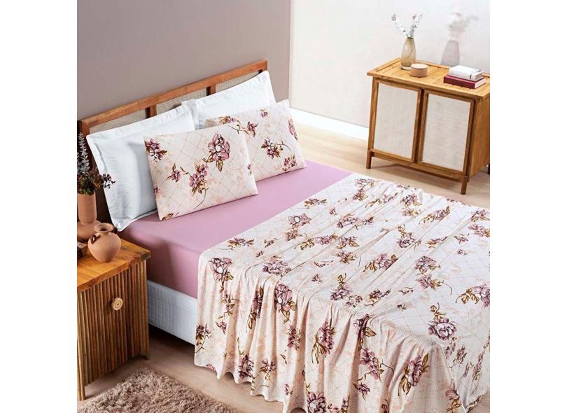 Jogo De Lençol Grace Padrão 4 Peças Malha 100% Algodão Rosê Floral