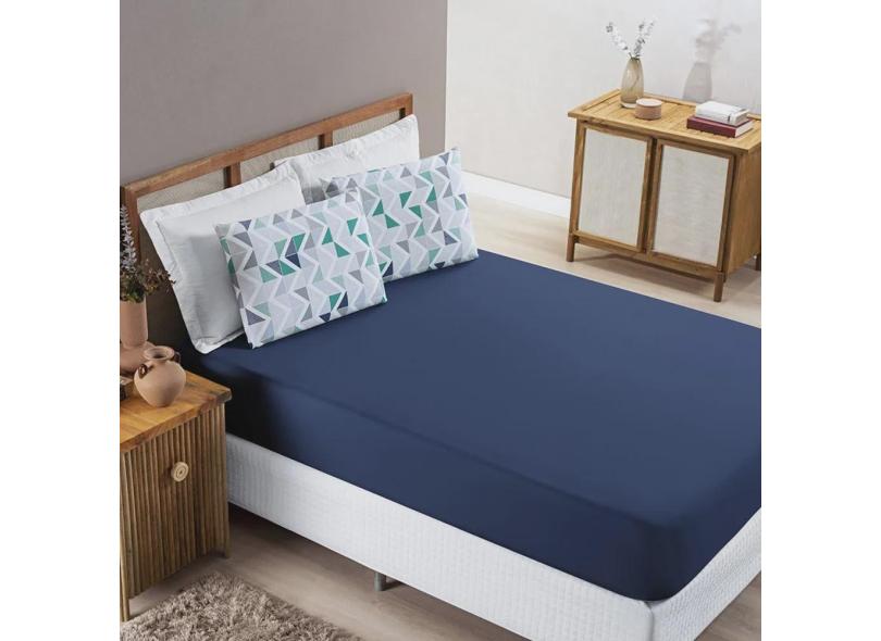 Jogo de Lençol Grace Queen 3 Peças Malha 100% Algodão Macio Estampado - Azul Geométrico